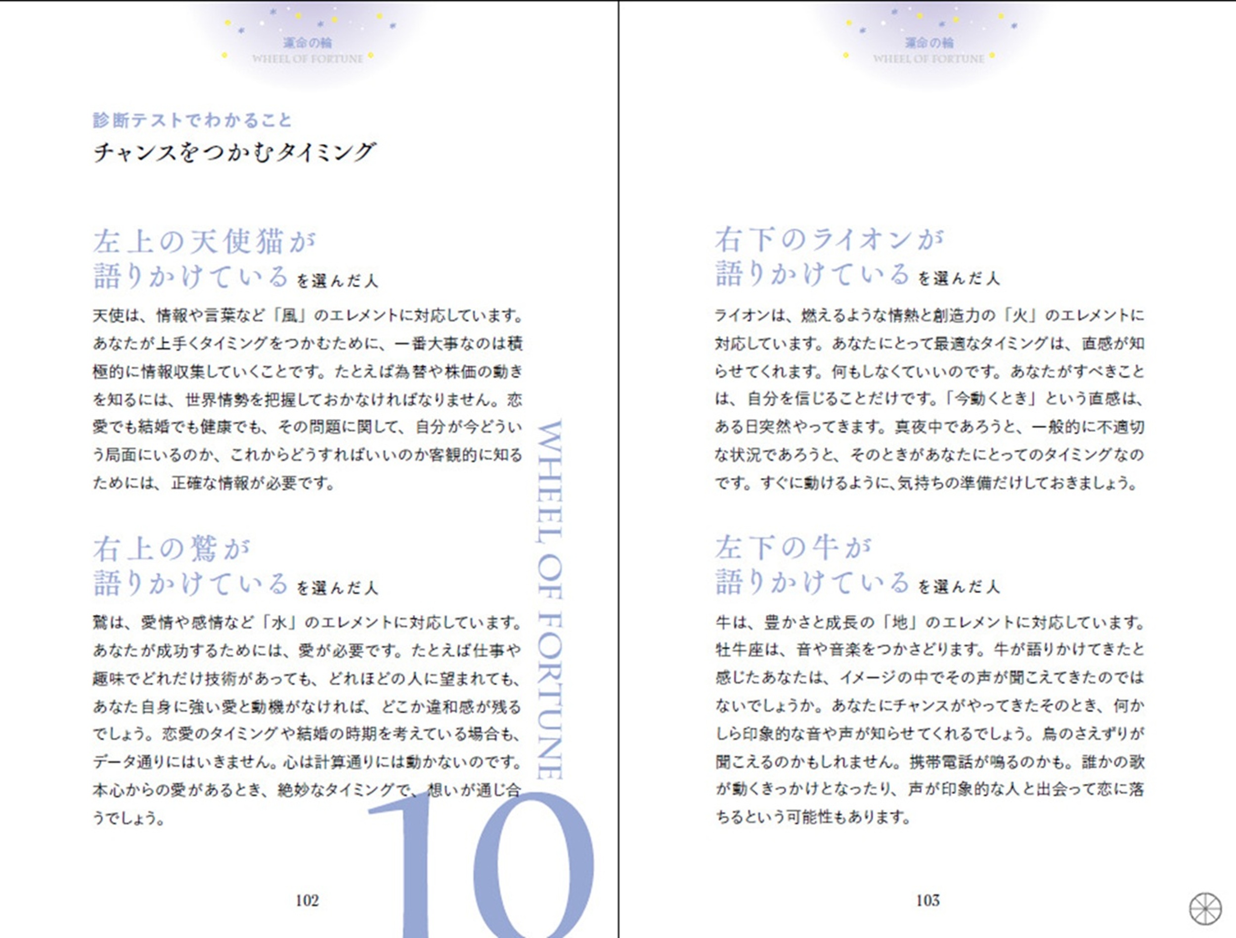 ・診断テストで【今のエネルギー状態】や【チャンスのタイミング】などが知れる